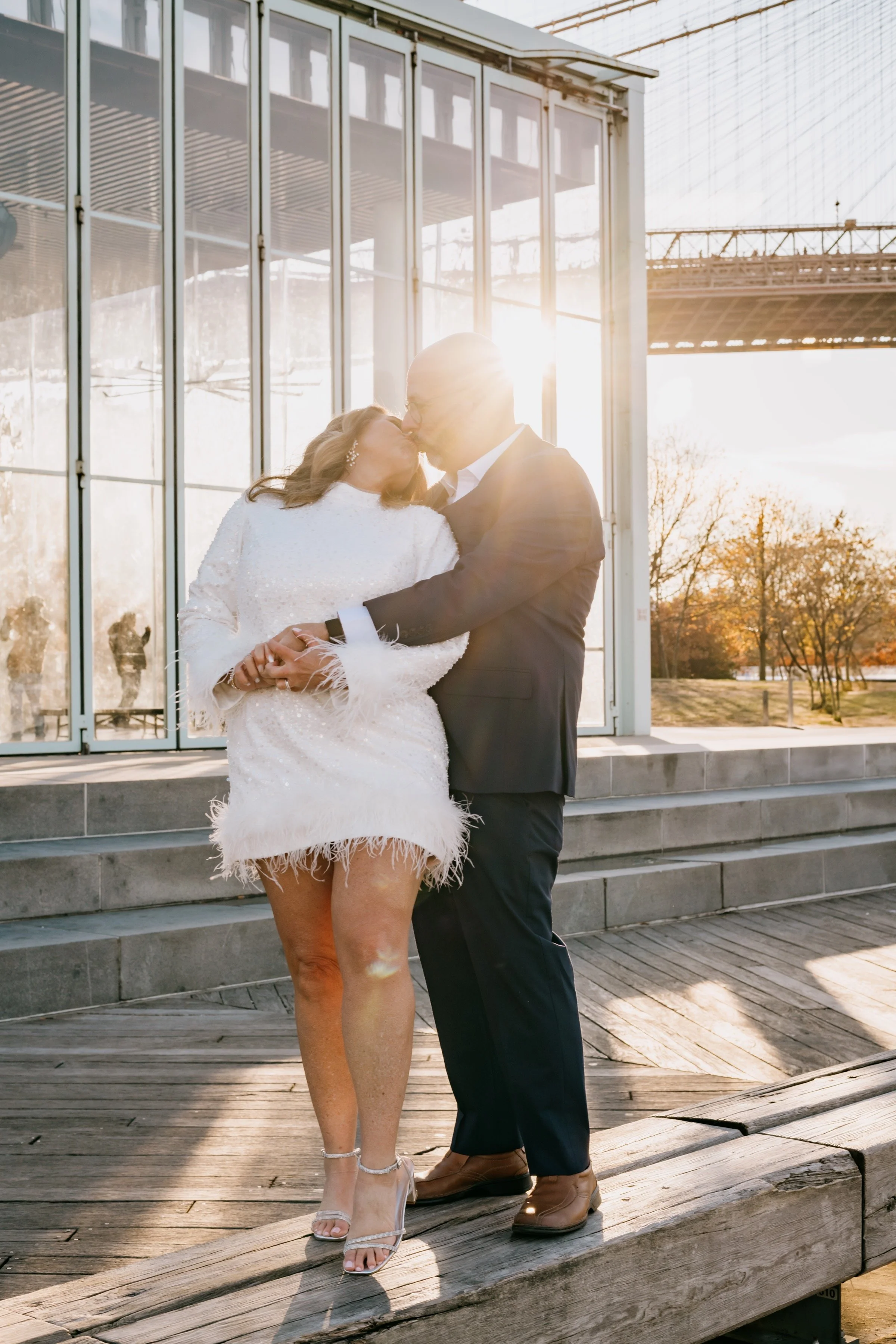 Elopement Announcement Photoshoot, Golden Hour at the Brooklyn Bridge